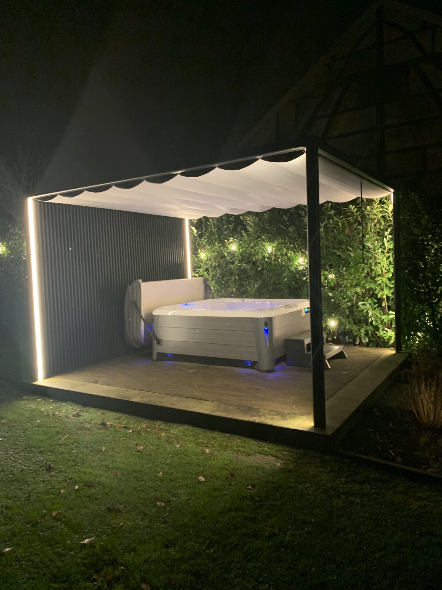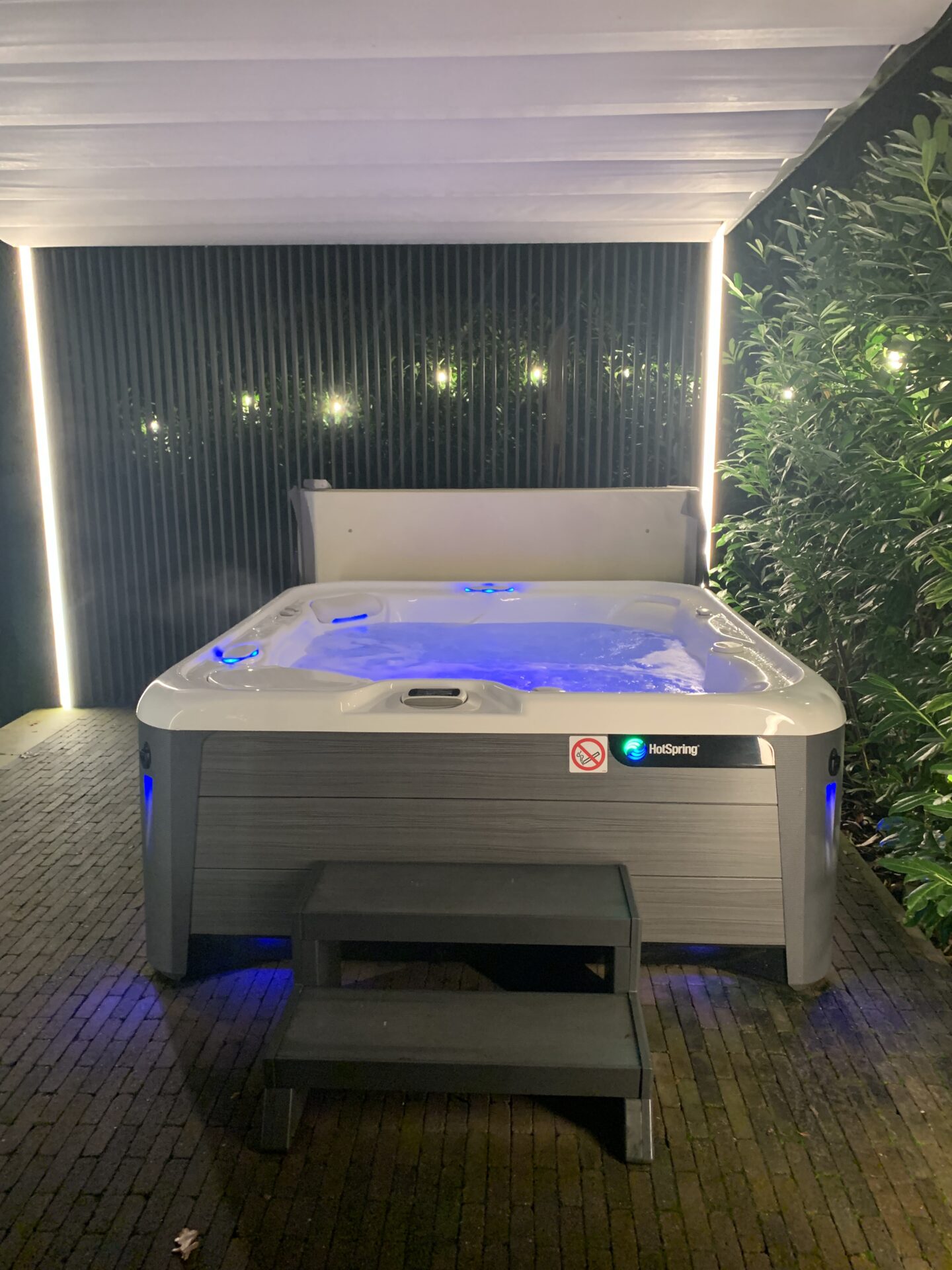 De tuin is volledig heraangelegd door “Flora Design” en beschikt over een ruime jacuzzi en barrel sauna. De sauna heeft een groot raam, zodat je ook vanuit de sauna kan genieten van de prachtige natuur. Zelfs bij koud winterweer zorgen de jacuzzi en barrelsauna voor een bijzondere ervaring.